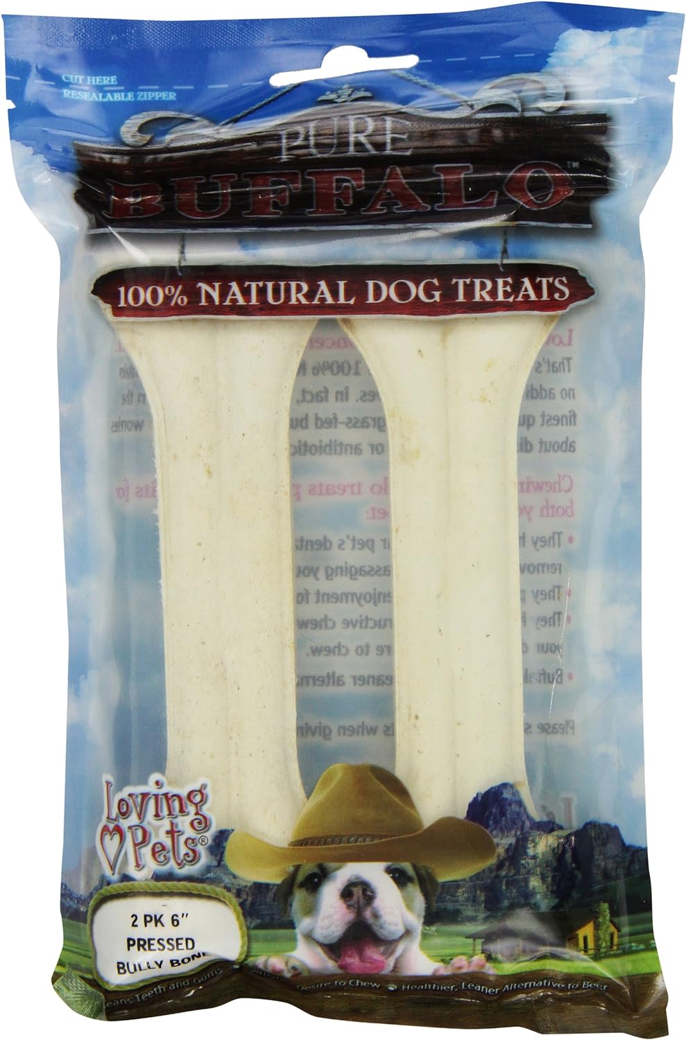 Loving Pets Pure Buffalo 6-Inch Pressed Bully Bone Dog Treat, 2-Pack